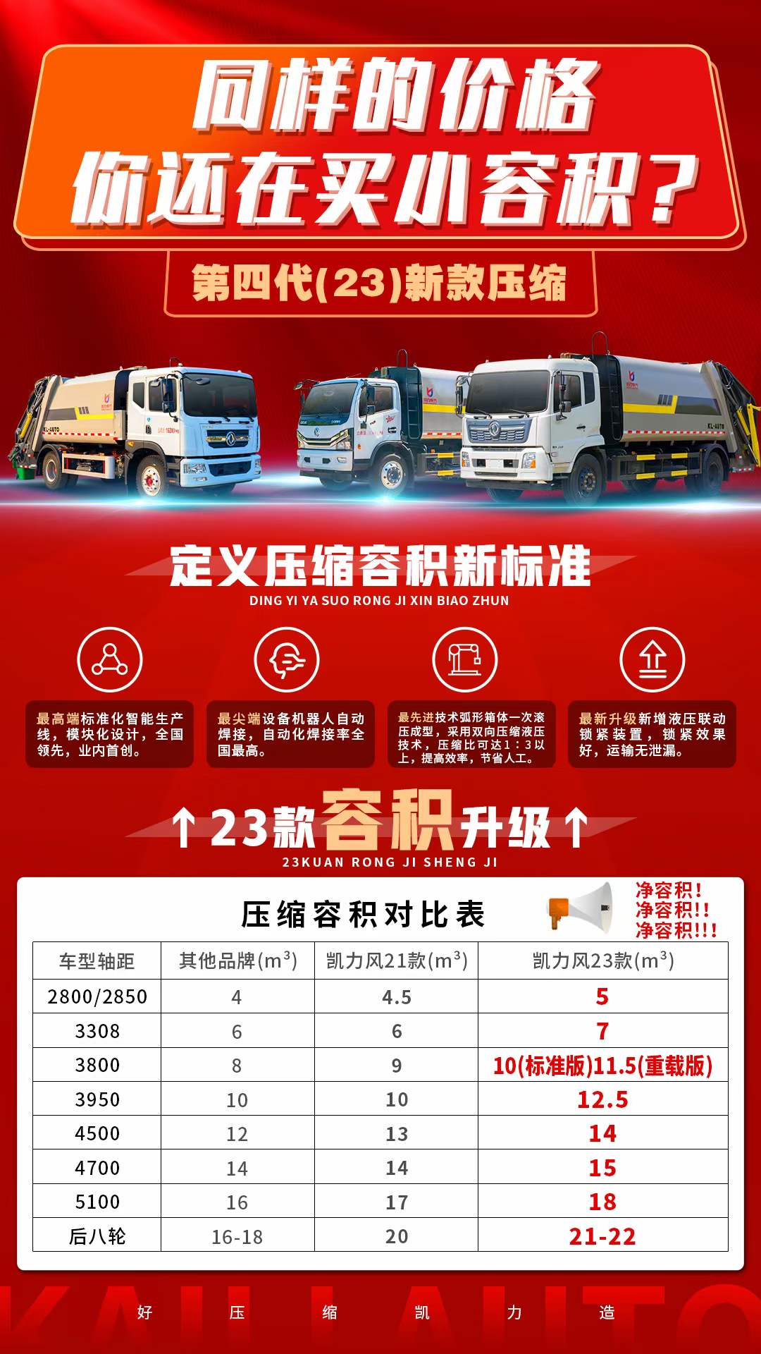 程力集團凱力第四?壓代?縮垃圾車,超越?止不?一點點,定義環衛垃圾車行業最?標高?準。