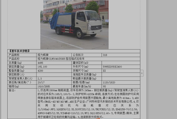2、后部翻轉樣式選裝垃圾斗裝置,并選裝無后翻轉機構。選裝無后翻轉機構時該車總長為7100mm,對應后懸為2150mm。選裝垃圾斗機構時該車總長為7350mm,對應后懸為2400mm。