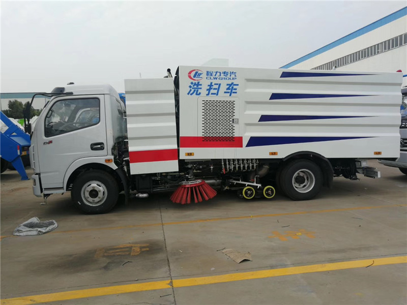 這款東風多利卡洗掃車可吸入粒度100mm,單排可以前翻駕駛室,發動機功率為115千瓦,156馬力發動機,東風洗掃車采用萬里揚6檔變速箱,東風邦樂5.5噸后橋,8.25R16鋼絲胎,帶動力轉向,氣制動,ABS,駱駝電瓶,可選裝空調。 中置兩掃盤,中置寬吸嘴,吸盤內置高壓噴桿,副發動機為康機140馬力發動機,清洗寬度3.5米,高壓沖洗高度≥21米,水罐容積4噸,垃圾箱容積5噸,最大清掃能力7萬平方米/小時。