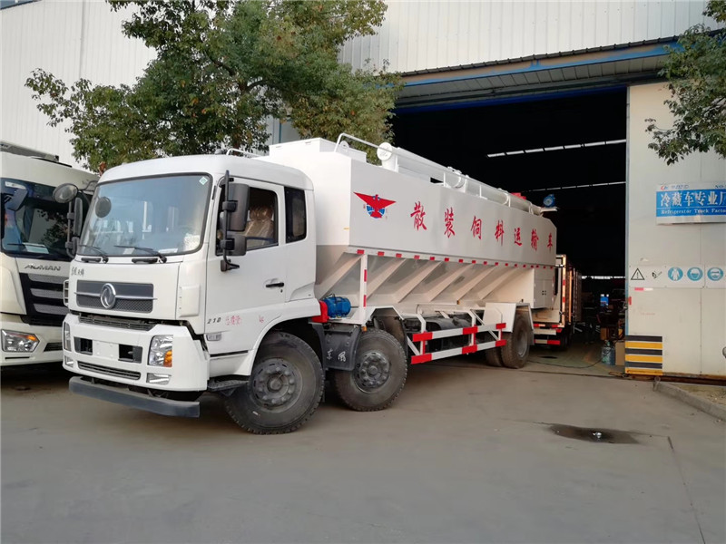 東風天錦散裝飼料車結構簡單、性能可靠、輸送量大、操控方便、機動性強、對物料無污染等特點,廣泛應用于各大中小型養殖企業的飼料的運輸。