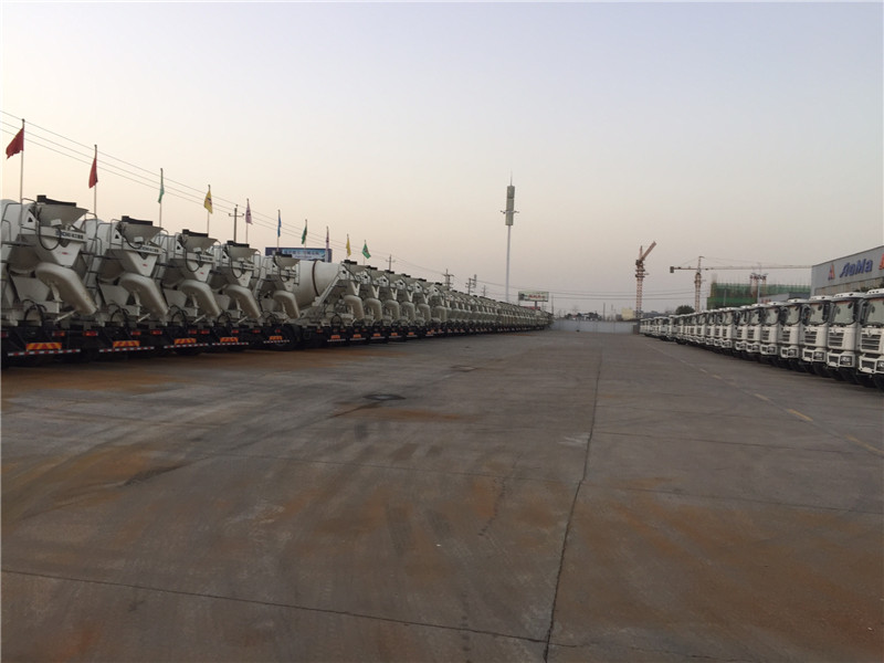 該車前封頭6mm合金鋼材料,筒體5mm合金鋼材料,帶氣壓供水裝置。石家莊科翼減速機、美國薩力油泵、美國薩力馬達、新鄉散熱器,300L水箱帶氣壓供水。在這里提醒各位客戶朋友,在混凝土攪拌車運輸過程中罐體禁止停轉,防止造成混凝土的凝結,停轉重啟時會造成對液壓系統、減速機的沖擊,導致液壓泵和馬達的損壞。卸料時,如發現水分蒸發,塌落度偏低不能滿足用戶要求時,可適當向筒內加水,然后以10—14r/min的速度旋轉30轉后卸料,使混凝土充分攪拌。