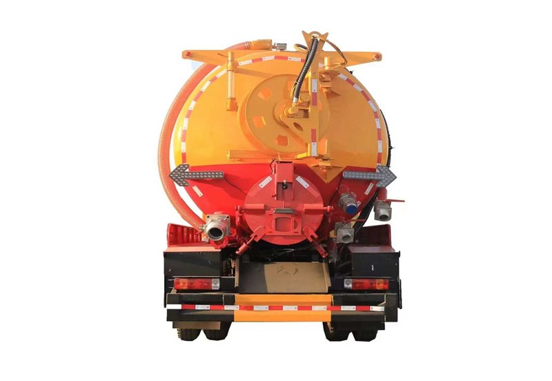 水罐污罐內封頭隔斷。清水罐兩側一邊一個消防栓進水口(副駕駛一側直通罐頂),兩側安裝量管、安裝小球閥放水。清水罐底部一個65方形排水閥。清水罐頂一個排氣閥。兩個三爪罐口(清水罐一個,污水罐一個)。清水罐、污水罐內部安裝爬梯。視糞窗(安裝圓球閥),兩倉互通。污水罐體內鋪不銹鋼薄板,罐體尾部一個700液壓開蓋,罐體兩側平臺用花紋板圍邊,平臺做滿。罐后封頭左側球閥1個6寸150球閥和4個寸的自流一個,600液壓門,右側4寸100鋁合金進料口。寸自流口后不開大門。體副駕駛后部一個150不球閥側排。清水罐、污水罐互通。平臺罐頂部兩側防滑平臺和護欄,后封頭一個視污管(安裝圓球閥),罐頂抽氣管加一個球閥開關,里面安裝自制防溢流閥。雙耀品浮315流量高壓泵,氣吹水,100米25高壓管,選裝濰柴420副發,后封頭液壓卷盤折疊、伸縮。后尾部封頭裝箭頭燈。M型保險杠(兩邊封口),安裝大工具箱,按照客戶提供圖片制作,其余廠內標配。