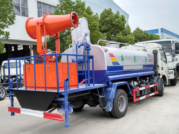 1、基本配置:水罐容積7立方米、常規最大配備CLW-50噴霧炮射程達25-30米、配套15KW汽油發電機、前沖后灑、側噴、平臺高炮、自流閥及消防接頭各1個、水管2根、8T以上高位花灑2個,標配億豐泵或金龍泵。