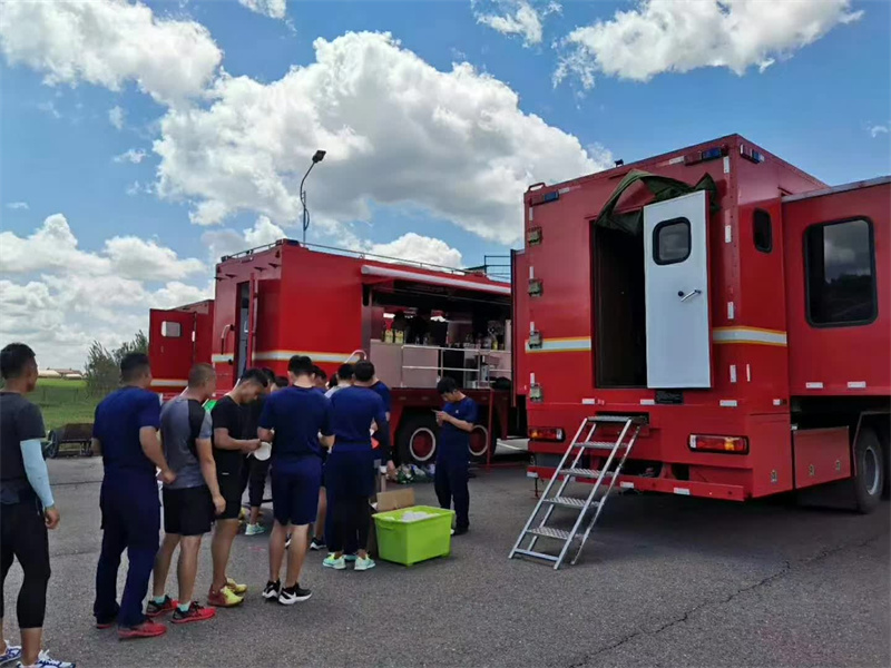 后勤保障車專業(yè)廠可移動飲食保障車交付后部隊官兵使用中。完全滿足200人以上就餐。部隊官兵承擔各類應急救援任務外,還擔負著周邊縣區(qū)急、難、險、重等應急救援任務。特別是地震、山體滑坡和泥石流等重大救援工作,由于參戰(zhàn)人員多、時間長、強度高、消耗大,對部隊戰(zhàn)勤保障能力建設提出了較高要求,保障工作是否得力直接影響到了整個應急救援工作的成敗。