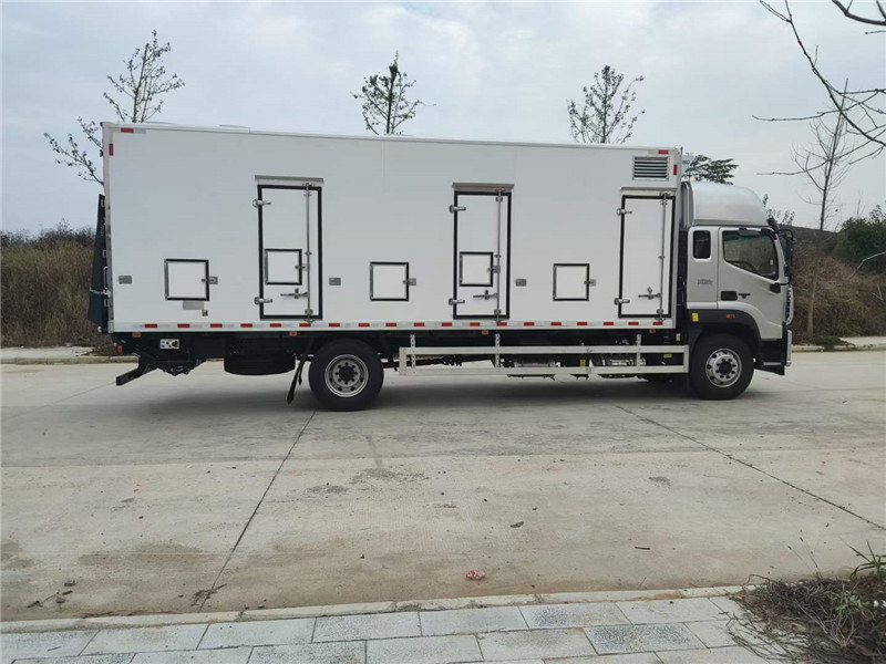 (3)廂體配件:廂體周邊鋁合金包邊,不銹鋼包角,不銹鋼門鎖,不銹鋼門框及合頁,廂體內(nèi)節(jié)能LED照明燈,廂體左右共5扇單開門,廂體靠前帶隔倉。